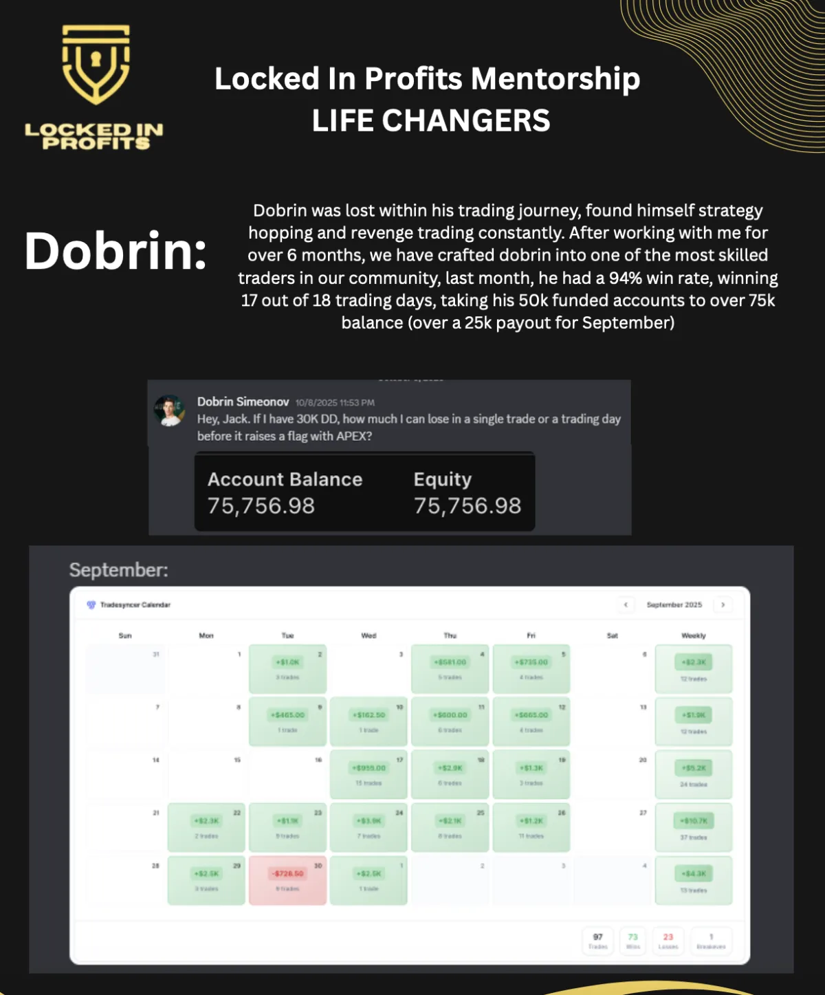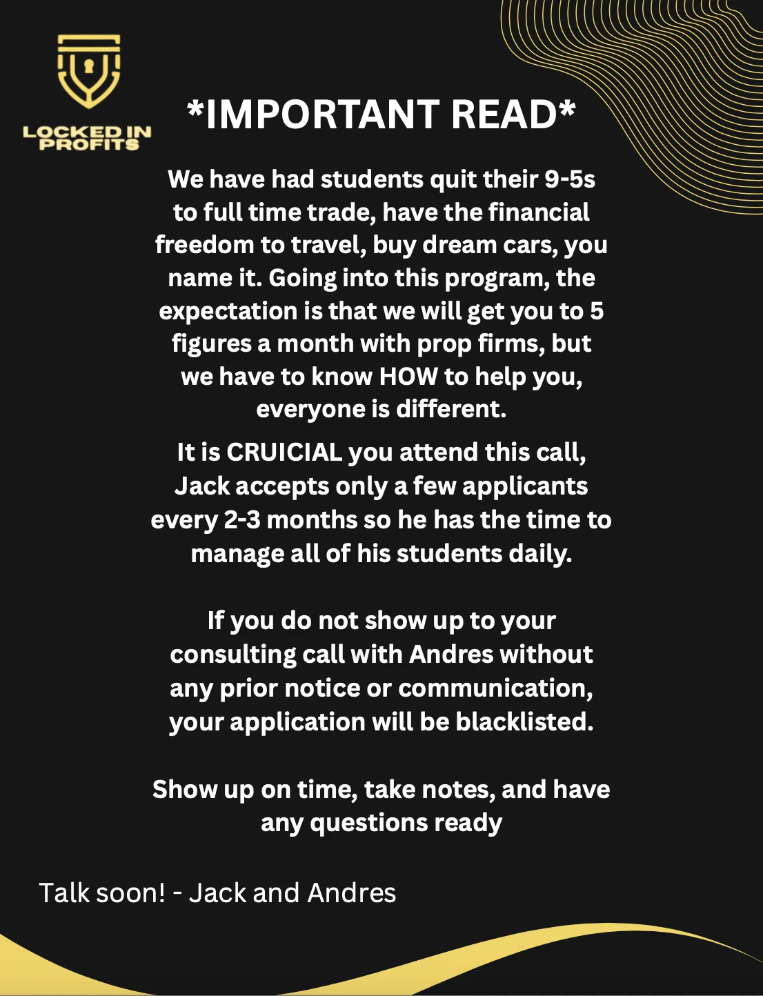 No, we don’t guarantee profits — this is an educational program, and trading involves risk.